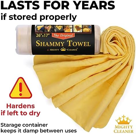 ✅ REUSABLE – This car wash shammy is extremely durable and designed to last for years. To get the best results from your shammy car care kit, simply wash it to remove any dirt and grime build-up. To keep your chamois car drying towel working as new, store it lightly damp in its plastic tube.