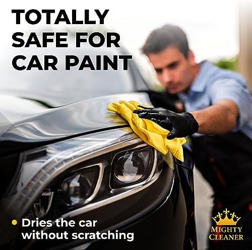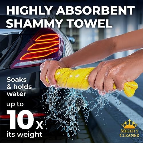 ✅ EXCELLENT ABSORBENCY – The Mighty Cleaner chamois towel for car care quickly absorbs and holds large amounts of water, leaving your car’s finish spotless and streak-free. Our shammy cloth for car drying works like a sponge and a towel in one for cleaning occasional spills.